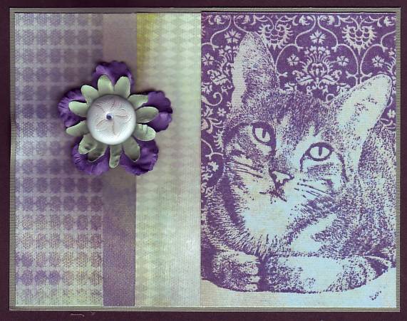 This card is designed using the Operation Write Home Sketch #66. Because my flower was a little lumpy, my scan isn’t the best. This is a simple sketch that works well with a fairly large image. This kitty looks very much like the “outside” cat we feed. Thanks for checking-in.