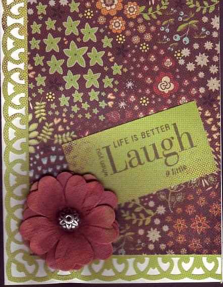 - Patterned papers – Basic Grey “Mellow” collection, “Cultured” (floral) and “Sapid” (green)