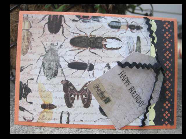 This card salutes the noble bug! I love this paper! The challenge is one of many at Operation Write Home (OWH) right now, to celebrate its birthday. The virtual cardmaking party right now has many challenges, and this is only one of them: “Celebrating Nature.” Many of my cards celebrate naturel, so this was a fun challenge to participate in. Thanks for the visit!