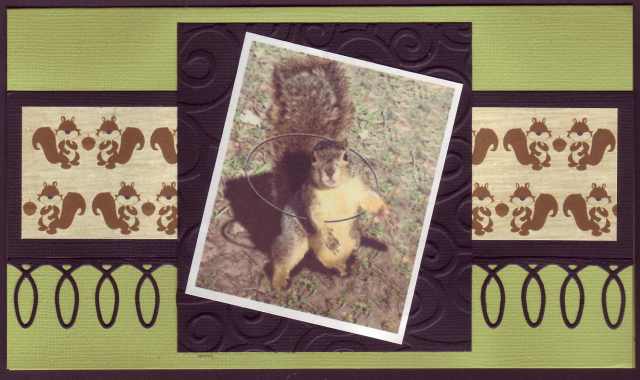 I made this card for our son Trenton’s 13th birthday. Since he is a squirrel fan, the hoola-hooping squirrel seemed appropriate, as did the loopy border made with the Memory Box die cut border. We have swirls and squirrels on this card–can’t beat that! Thanks for the visit and have a great day!