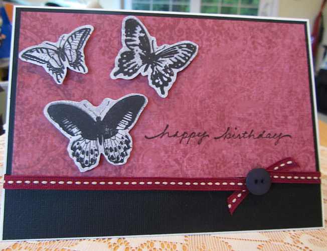 I used the current sketch #165 at Clean & Simple for inspiration for this card. I stamped the butterflies on the Basic Grey paper that had a subtle pattern, cut them out and popped them up for a little dimension. Thanks for stopping by.