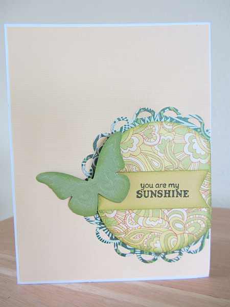 I made this card with the current Clean and Simple Sketch #183 in response to the Midweek Throwdown Challenge at Operation Write Home. This week’s challenge was to use a green and yellow color palette. I really like this sketch and the pieces just fell together for me from my stash! Plus I was able to use one of the stamps from the new Darcie’s set I just got, which I think will be cheery for more Operation Write Home cards to come. Thanks for visiting today.