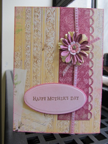 This was the last Mom card I put in the box I shipped off to Operation Write Home today! Our deadline is next week so that the troops will receive Mother’s Day cards in plenty of time. This is another beautiful sheet of paper produced by Graphic45. Both patterns are from the same piece, since it is double-sided. Thanks for visiting today.