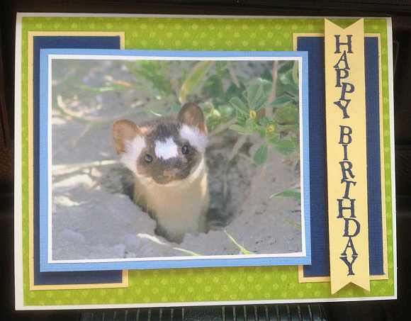 I’m finally getting a card posted again. Too much work and running around, and not enough card-making time! I made this one for my son’s friend, who likes weasels! I’m sure that this is my first weasel card. The image worked well with this sketch from Clean & Simple Stamping (Sketch #202). It is a very simple card, made mostly of cardstock. I popped up the image and the sentiment. Just a fun card for a 13-year-old.