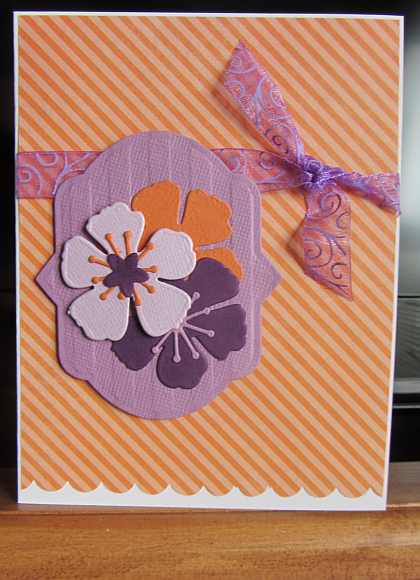 This card features stripes on both the paper and the embossing folder. The Day 180 challenge at 365 Cards is to create a card with stripes. The color combination is not one that I would have normally chosen, but it is bright, cheery, and what I had in my on-the-road stash. I used some new dies for this card. The Memory Box floral set has the flower and two centers to build flowers in a variety of colors. The label die is also new to me and I look forward to using a Just Rite stamp set that fits in this die set as well. Too much fun! I’m trying to make quite a few general cards for OWH, so they can be used for any occasion, so this will be handy for that. Thanks for visiting today.