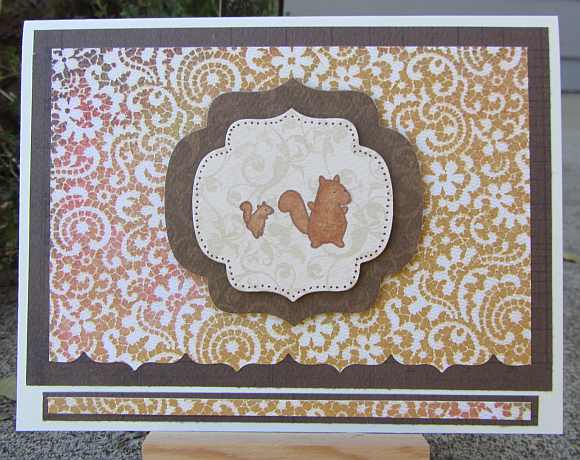 This card featured my first real mirrored image attempt for the 365 cards Day 185 challenge: Mirror Image. I used the Memory Box “Tree Border” stamp and the watercolor technique with Distress Inks. I stamped with a Distress Ink pad and then touched up the stamp (direct to rubber) with a couple more colors of Distress Ink Markers. Then I gave it a little spritz of water and stamped onto watercolor paper for the reflected portion of the image. I used the same stamp to stamp the top image with VersaFine ink. The sketch I used is the current one at Freshly Made Sketches: #50. I really liked this sketch–it was really perfect to display the image. Thanks for visiting. I have now officially finished one full week of challenges at 365 Cards! Hurray!