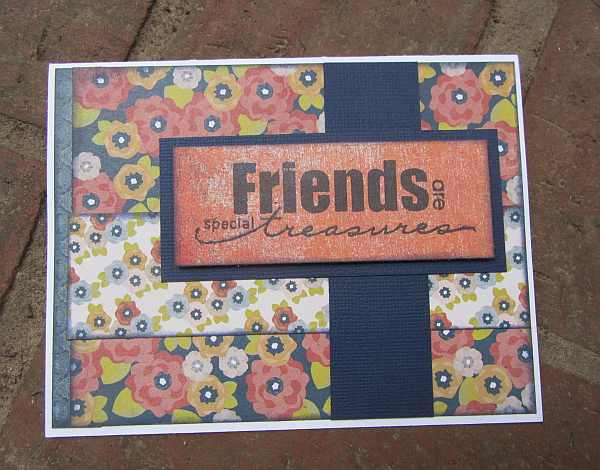 This week’s Operation Write Home Stars & Stamps Midweek Throwdown challenge was to create Friendship cards. I showcased some pretty floral papers for this one and created a focal point with the sentiment. Hopefully it will cheer the recipient up a little. Thanks for visiting today.