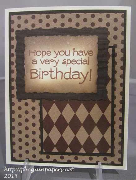 - Patterned papers – Canvas Corp. “Chocolate & Kraft Diamonds” and “Chocolate and Kraft Mini Dot”