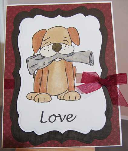 For this digital image challenge at Operation Write Home, I used one of the free images at Crafter’s Digital Art Center for the CDAC Progressive Challenge #8. I colored the puppy with Copic markers and made it into another love card/Valentine to ship off to the troops in the next group of shipments. Thanks for visiting today!