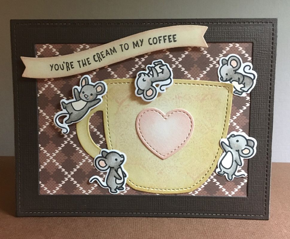 Yesterday was National Coffee Day, but I wasn’t quick enough to post the card I made to celebrate coffee. It was fun to make a little scene with multiple stamp sets, and of course, to include lots of critters. I pulled mice from three different sets (and there are more!).