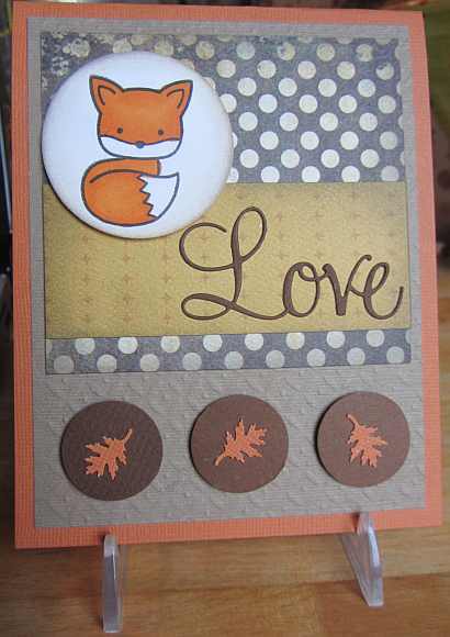 Here is another “love” card for Operation Write Home. I used OWH sketch #204 for this card and colored the cute little fox from Lawn Fawn with Copic markers. I popped up all of the circles with some dimensional adhesive and distressed the edges of my papers with Pumice Stone distress ink from Ranger. Thanks for visiting today.