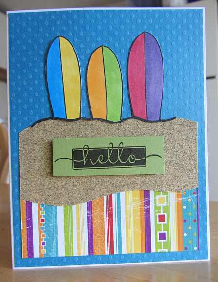 I made this card with the first image in this round of the Crafter’s Digital Art Center’s Progressive Challenge. The digital “stamp” was created by Tiffany Doodles, and I colored it with Copic markers and added some sandpaper for the sand. Just a fun card that will be shipped off to OWH so that a soldier can send a bright “hello” to someone. Thanks for visiting.