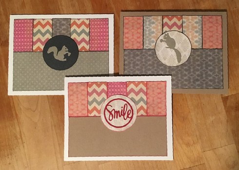 I’m helping a friend put together a box of cards to send to a military unit so they can send cards home to their friends and family, similar to what we used to do for Operation Write Home. A group of us are challenging each other to use sketches, use up supplies, and so on. I created these three cards using a sketch from the Operation Write Home days. Here are a few of the cards I’ve made with this sketch so far. Thanks for stopping by.