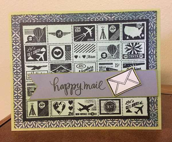 One of my oldest work friends retired as of today, so sadly I had to say goodbye–but not without making him a card! Bruce was our mail clerk at the Oregon State Capitol, and provided the best customer service to legislators, governors, treasurers, secretaries of state and many, many staff for over 35 years. So I was ever-so-pleased to be able to use some of my postage related stamps to create his card! The background stamp from Hero Arts was a perfect starting point. I popped up the sentiment flag with dimensional adhesive and then popped up the little envelope yet again. So long, Bruce! You had a great run!